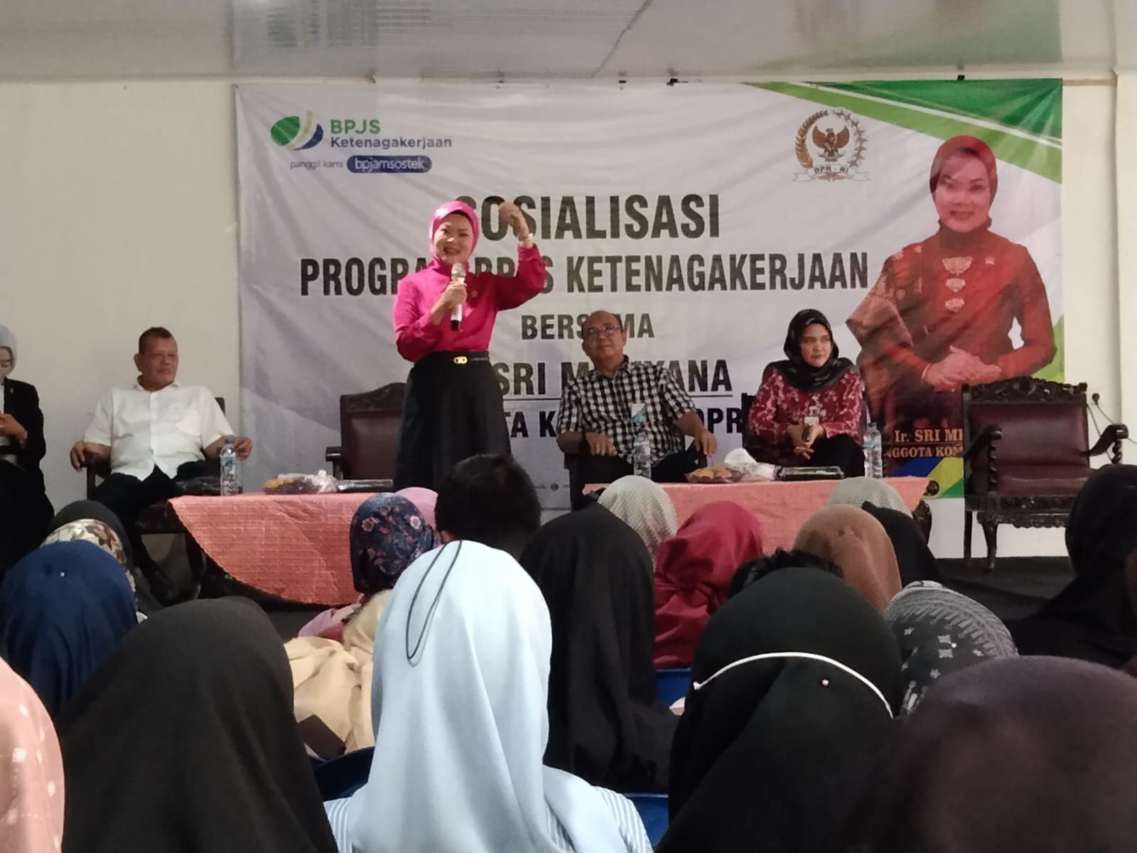 Anggota DPR RI Komisi IX, Ir Hj Sri Meliyana mengatakan bahwa kegiatan ini dalam rangka mengedukasi masyarakat tentang program jaminan sosial BPJS ketenagakerjaan.