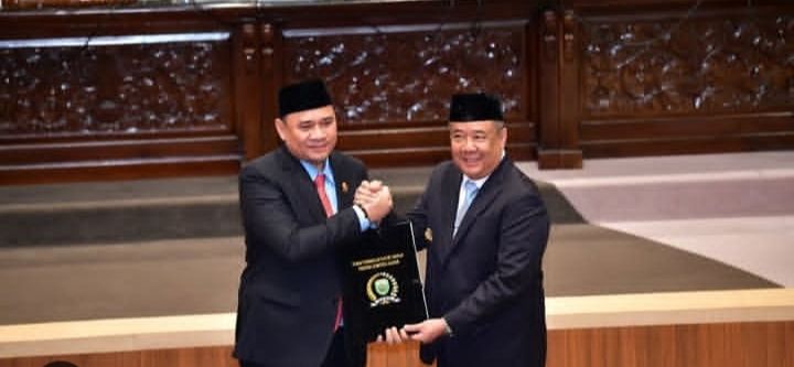 Selanjutnya hasil rapat paripurna dilakukan penandatanganan oleh Ketua DPRD Sumsel Andie Dinialdie, SE., MM dan disaksikan Wagub Sumsel H Cik Ujang.